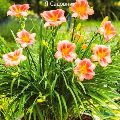 Лилейник Bronze — это настоящее украшение любого сада. Его нежные розовато-оранжевые цветки с жёлтой сердцевиной, похожие на лилии, появляются в июне. Каждый цветок живёт всего несколько дней, но благодаря обилию цветоносов куст остаётся усыпанным цветами до августа-сентября.
